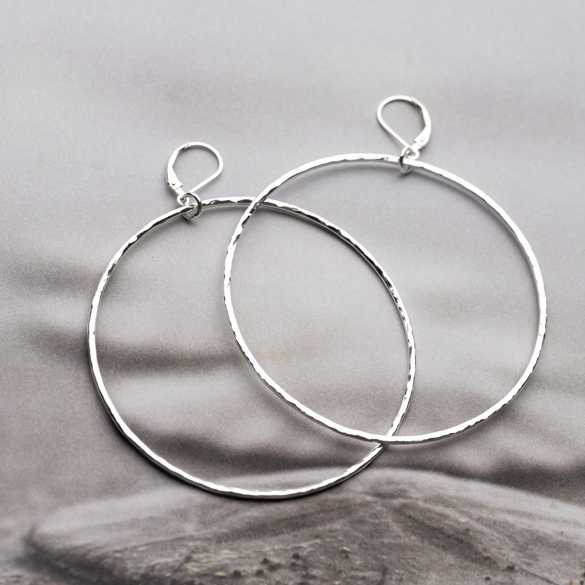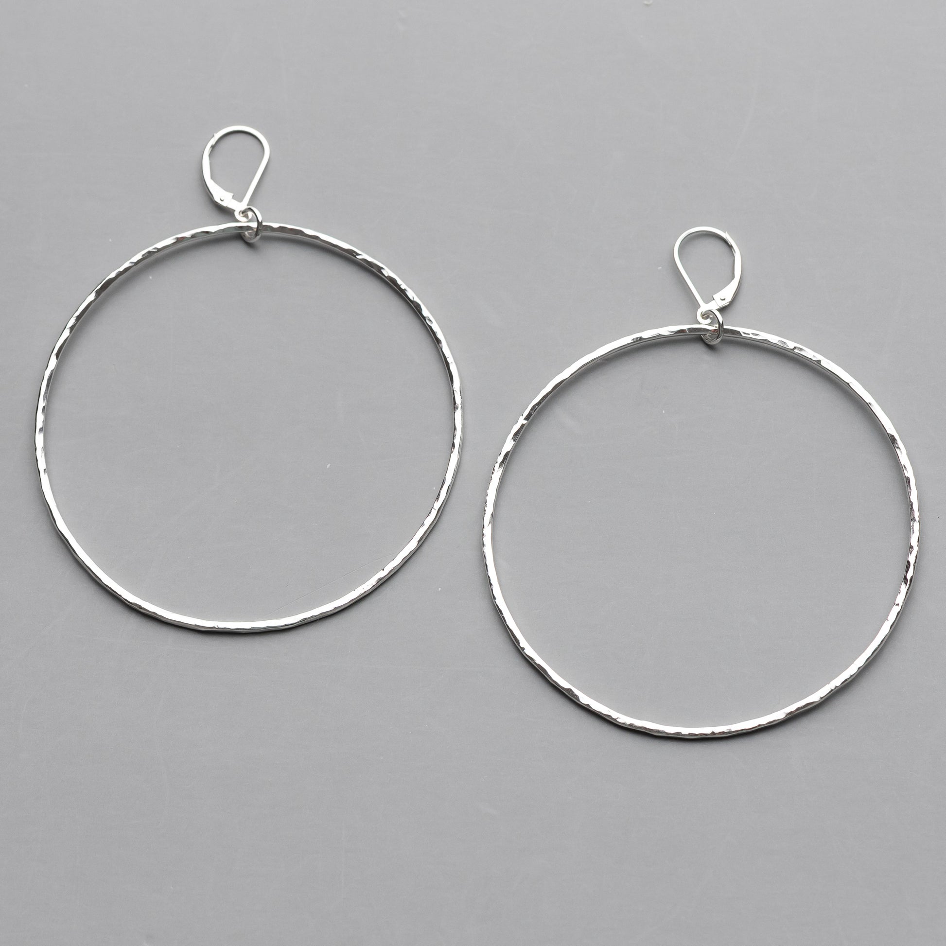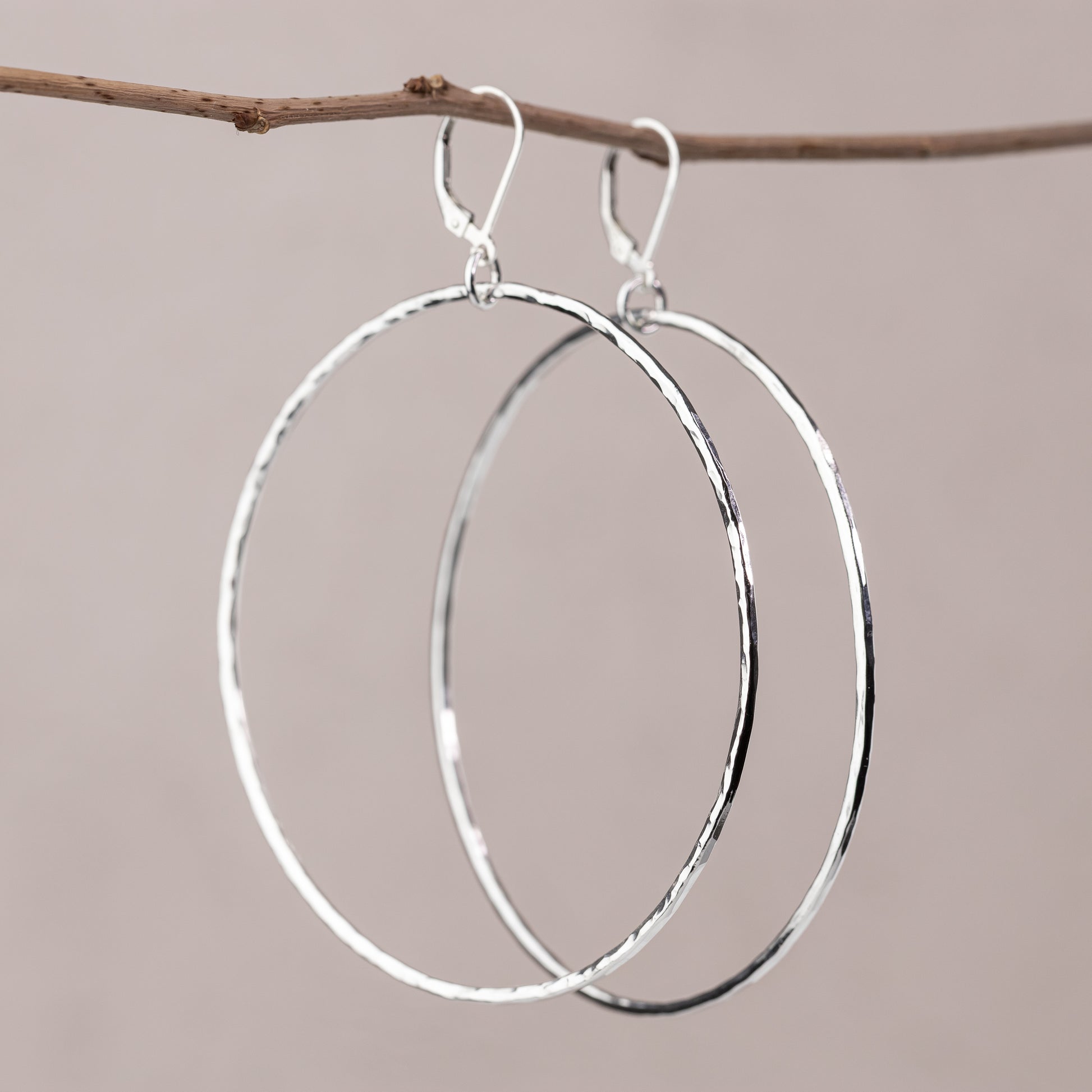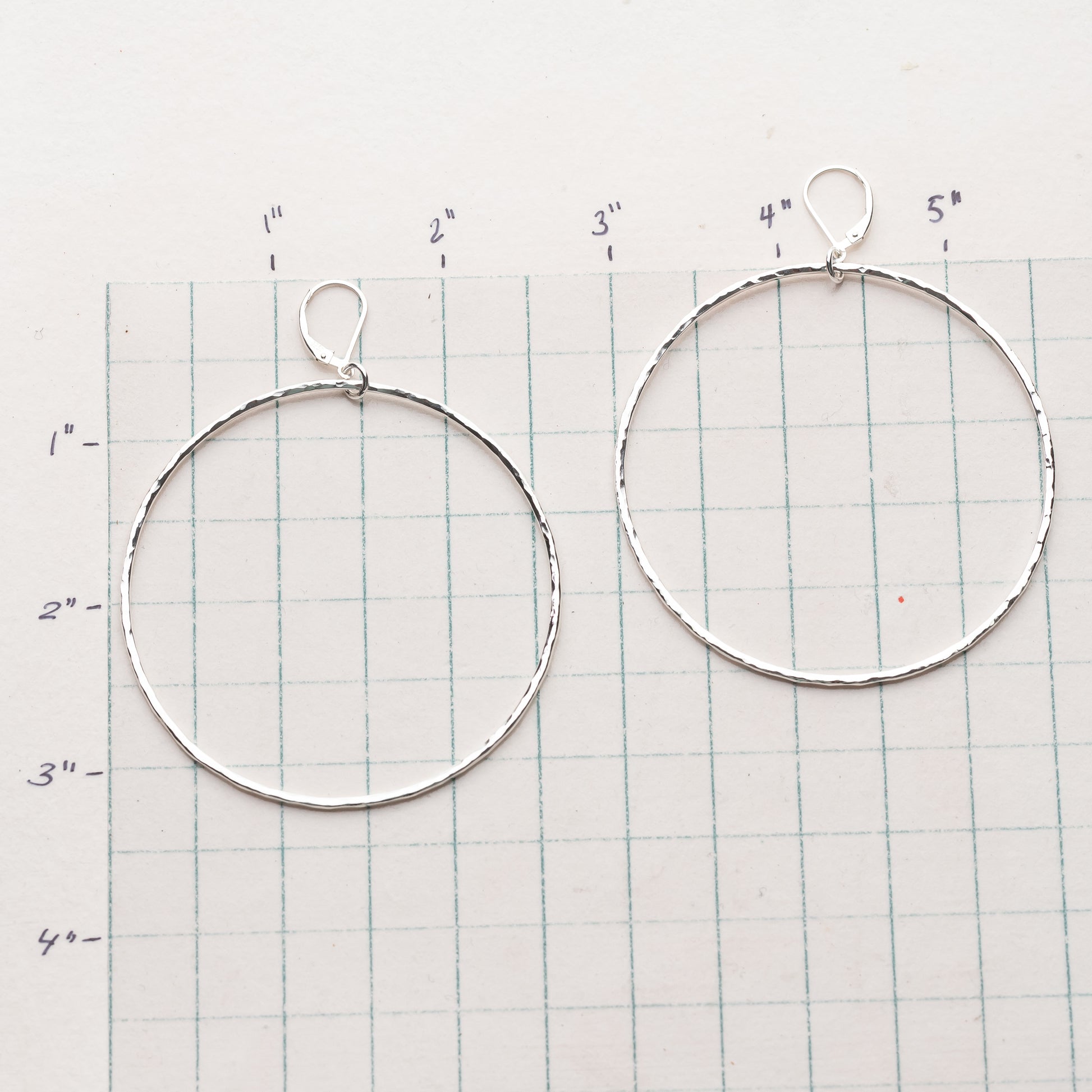 Handmade with solid sterling silver, these big circle dangle earrings are sure to make a statement! Hand hammered for texture and then polished to a high shine to catch the light just right. These are large but still light and comfortable to wear.