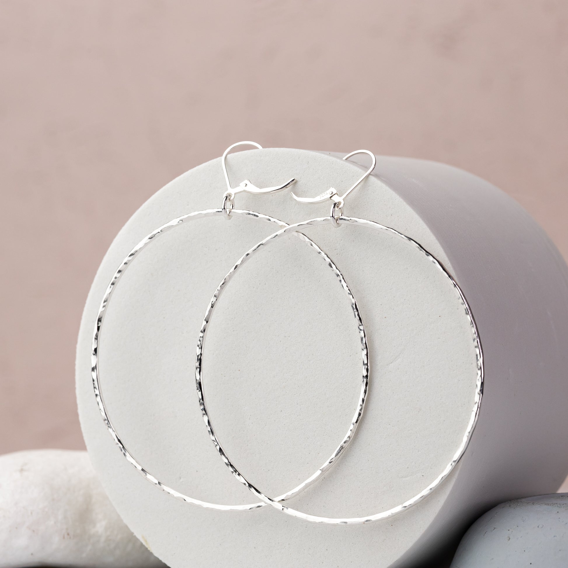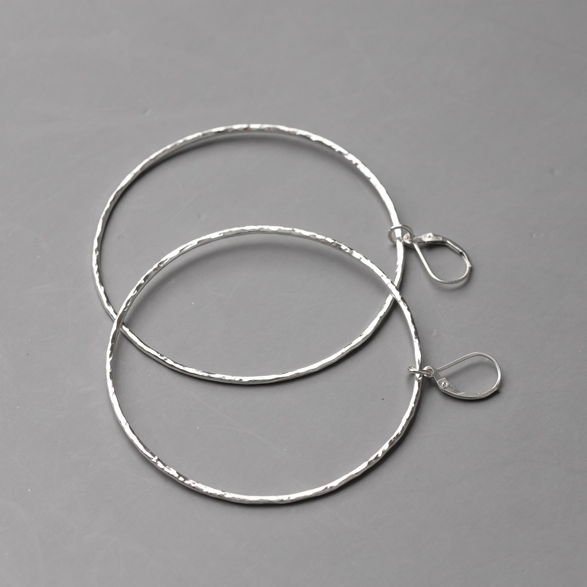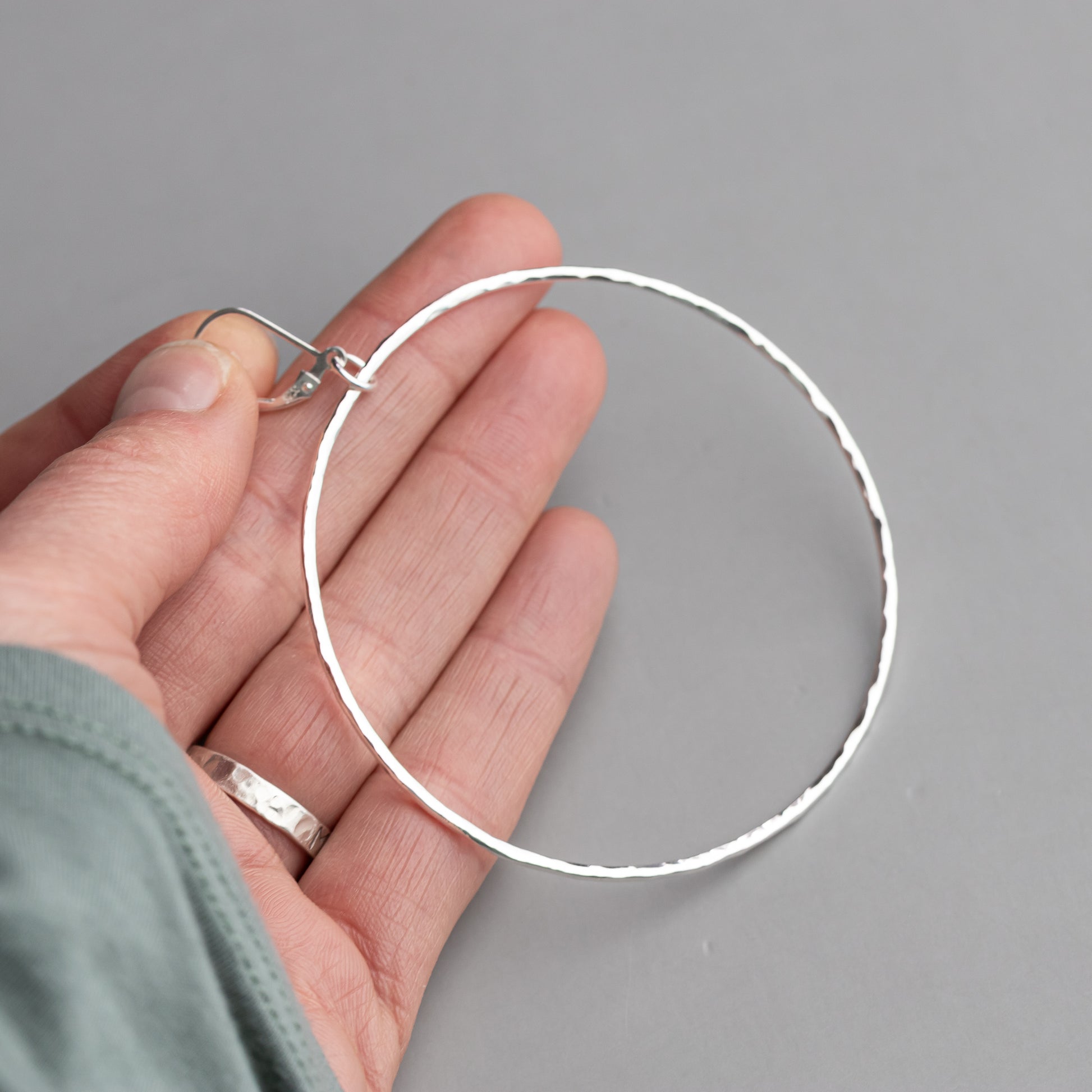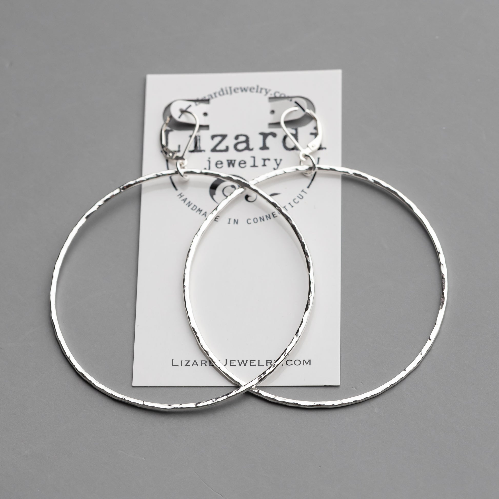Handmade with solid sterling silver, these big circle dangle earrings are sure to make a statement! Hand hammered for texture and then polished to a high shine to catch the light just right. These are large but still light and comfortable to wear.