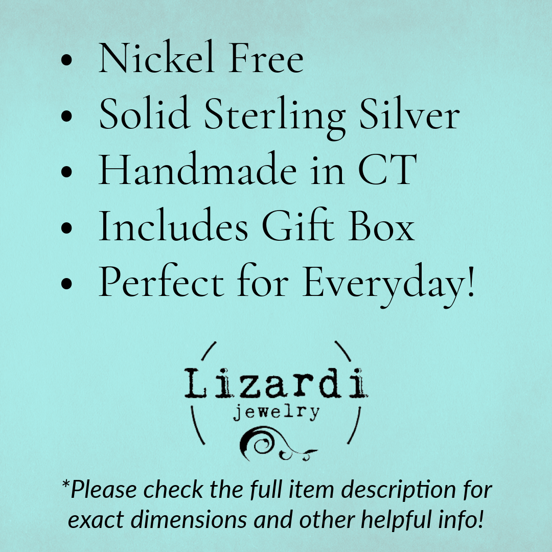 Packaged in a gift box with a silver bow, each item arrives ready to gift to yourself or someone special. We also include care instructions, an anti tarnish storage bag for your jewelry and a small cleaning cloth. We try to think of everything, we are obsessed with what we do and want you to have what you need to enjoy your jewelry for years to come!