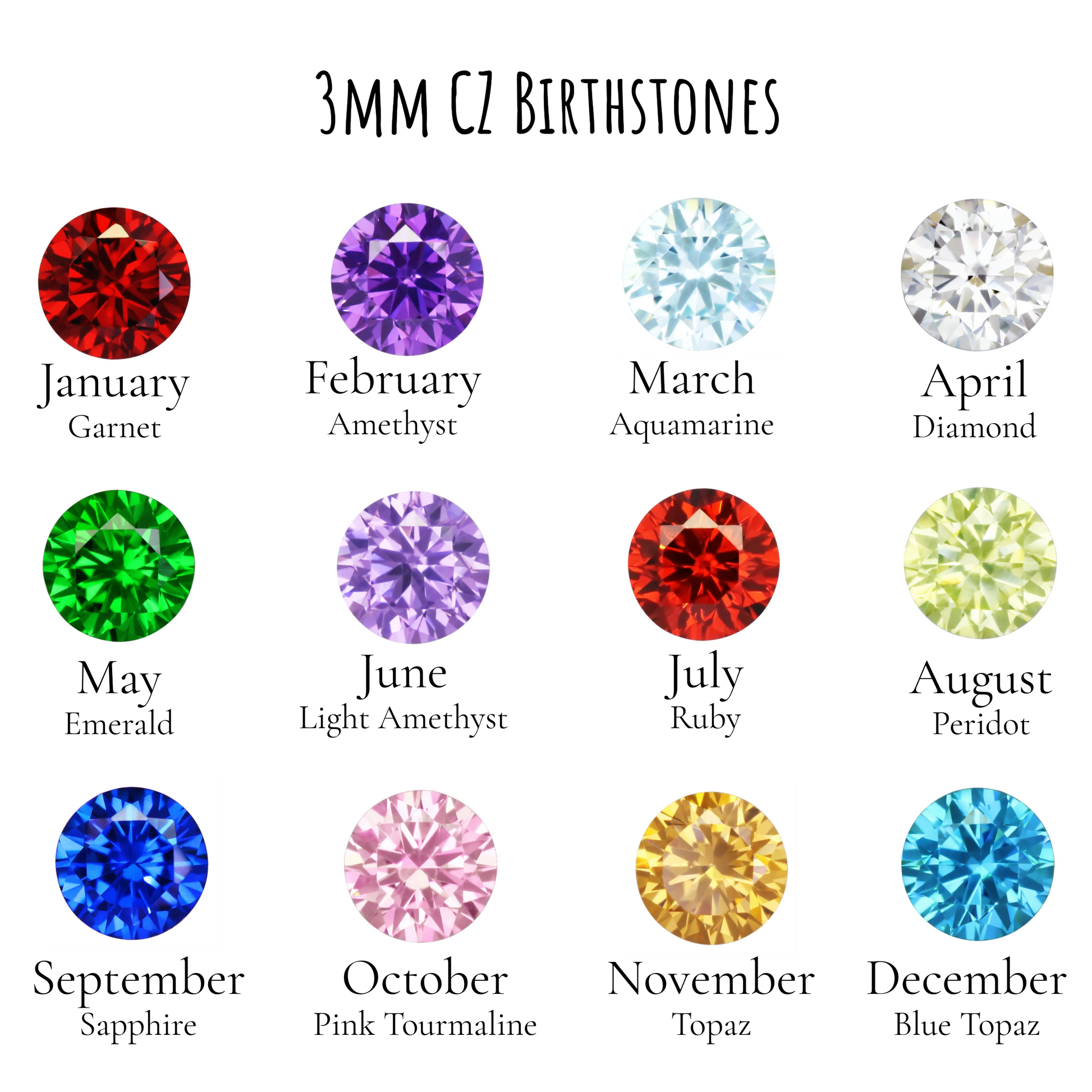 * Birthstones are a small 3mm size high-quality cubic zirconia