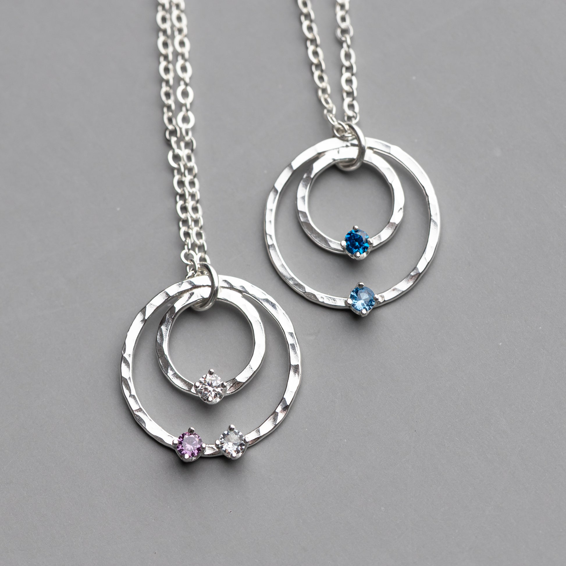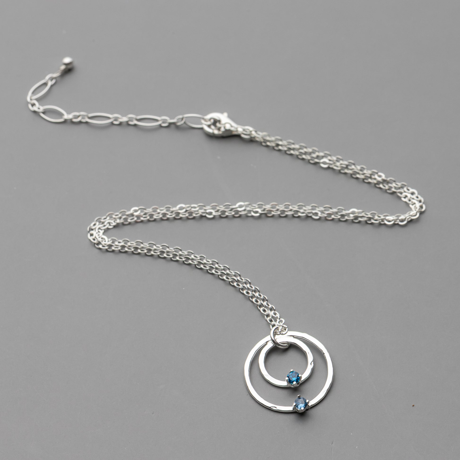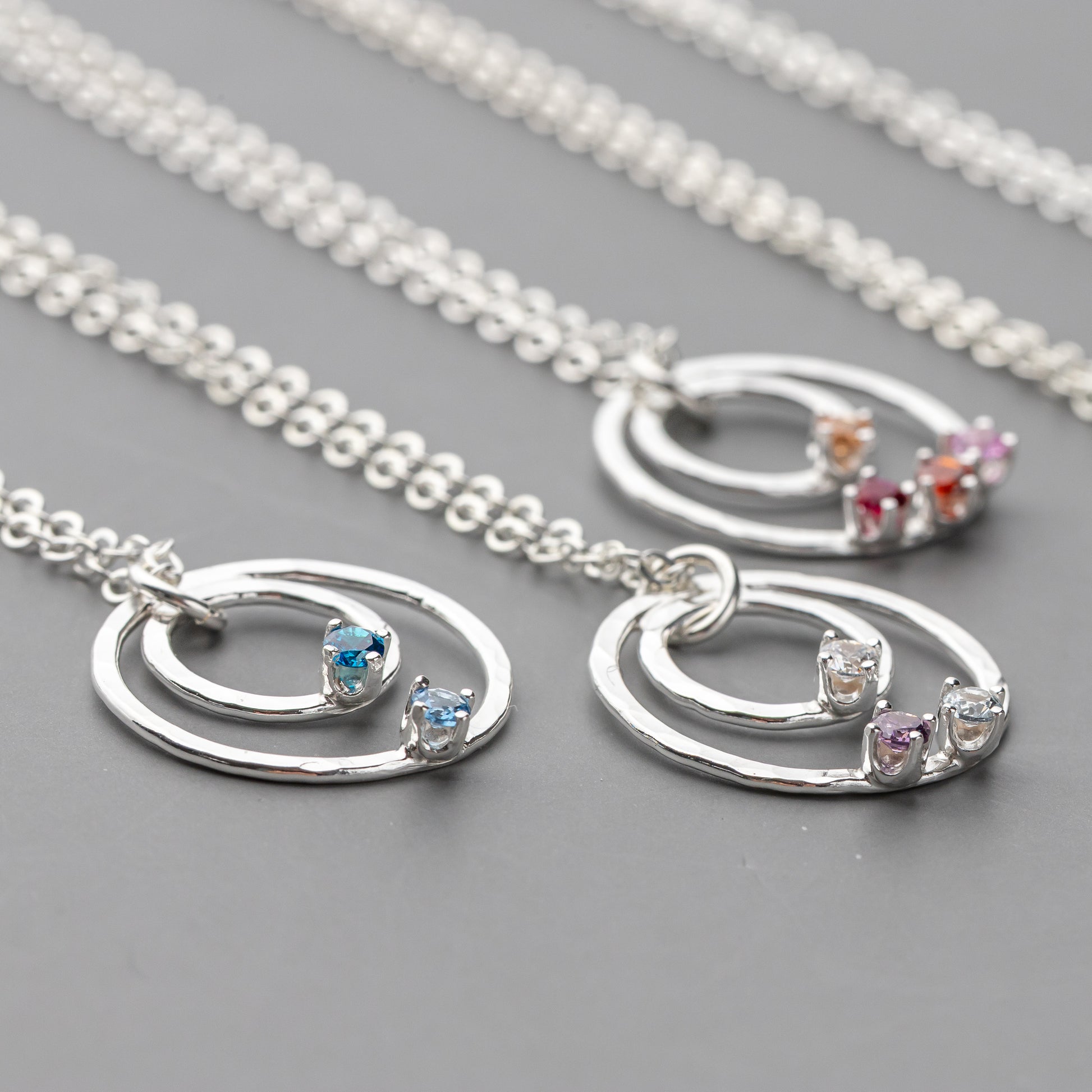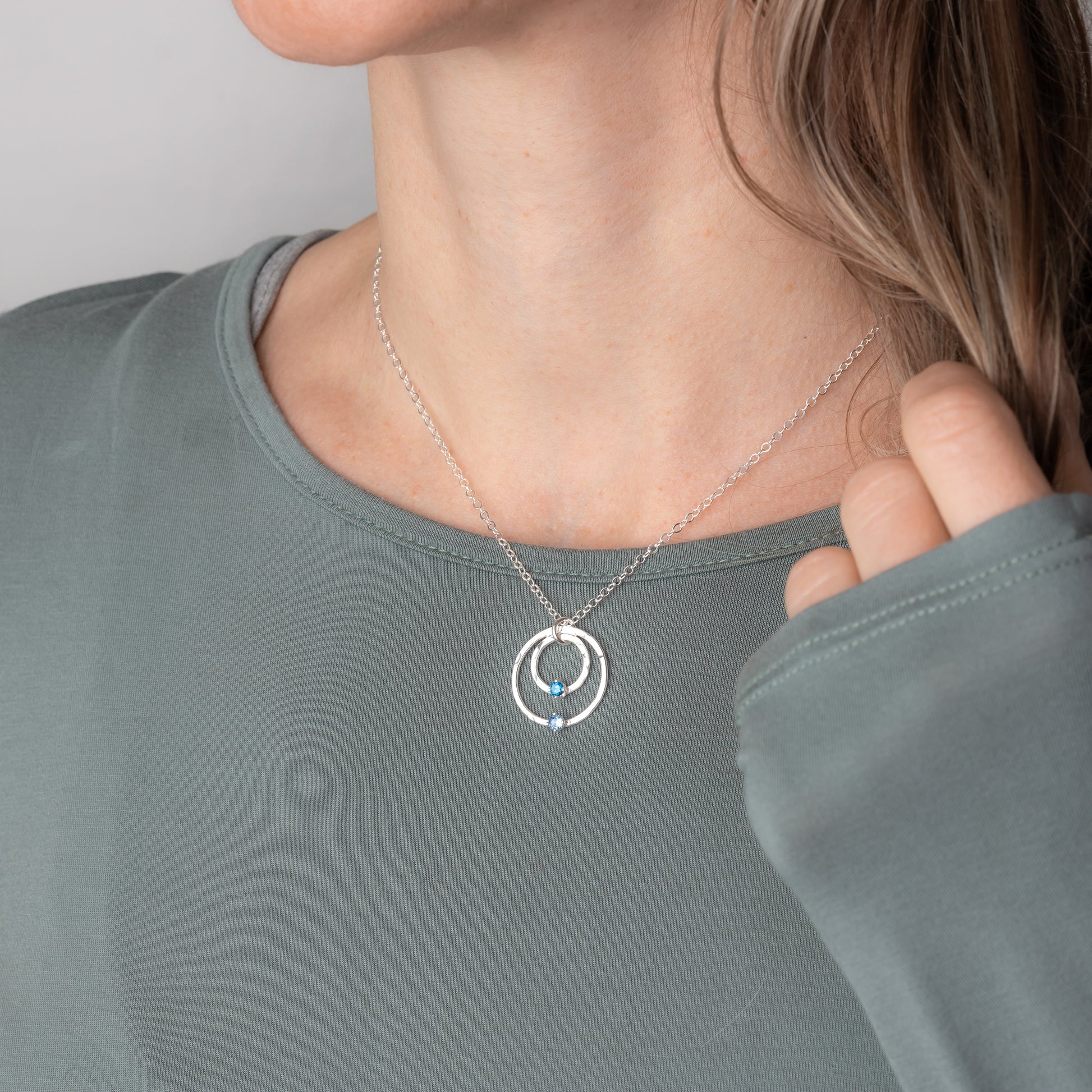 Each necklace is handcrafted in our Connecticut studio. We form and hammer every silver circle for texture and dimension, set each stone by hand, and polish to a reflective finish. Because every piece is made individually, your necklace will be unique and filled with the care we put into our craft. Please allow 7-10 days for us to create your custom necklace before it's ready to ship.