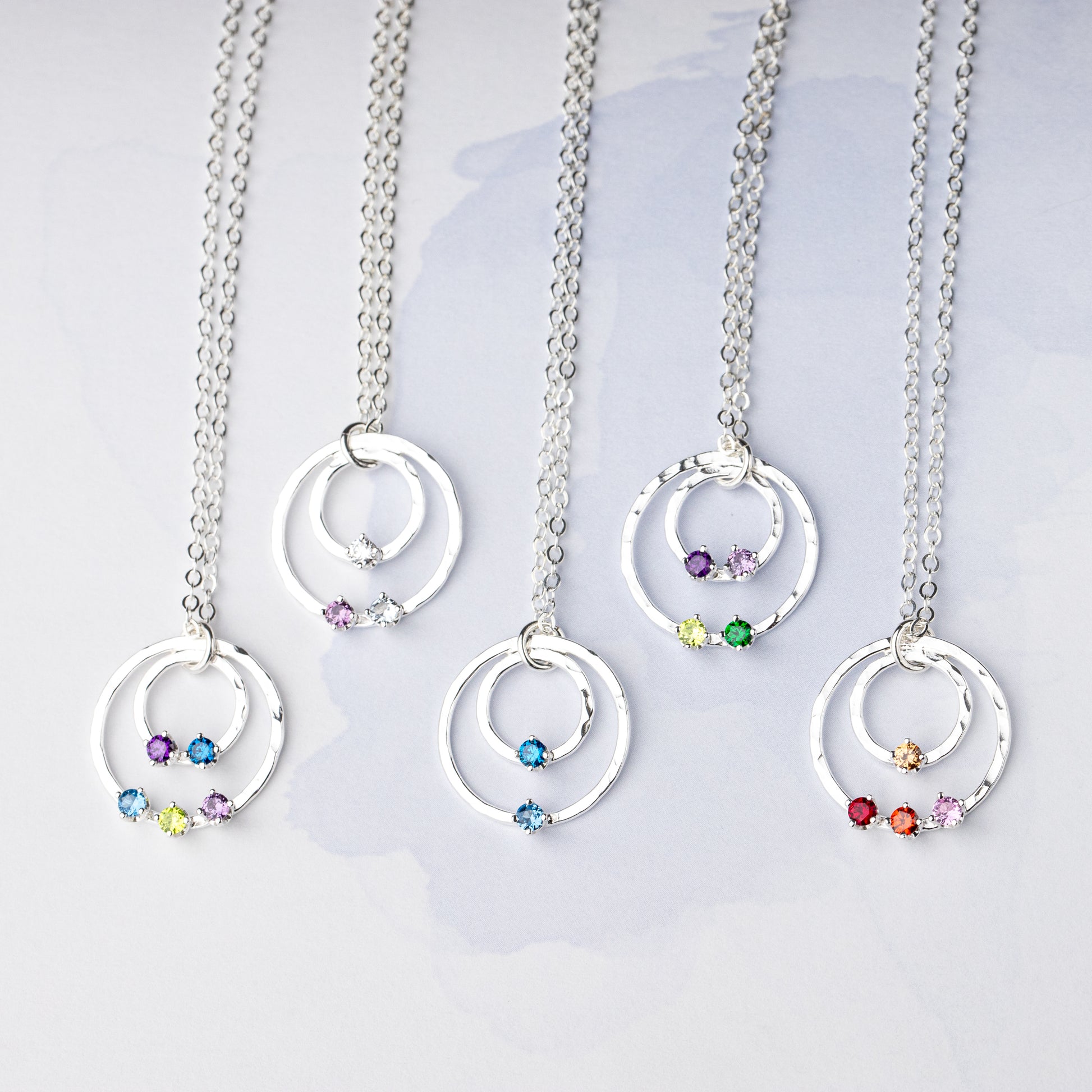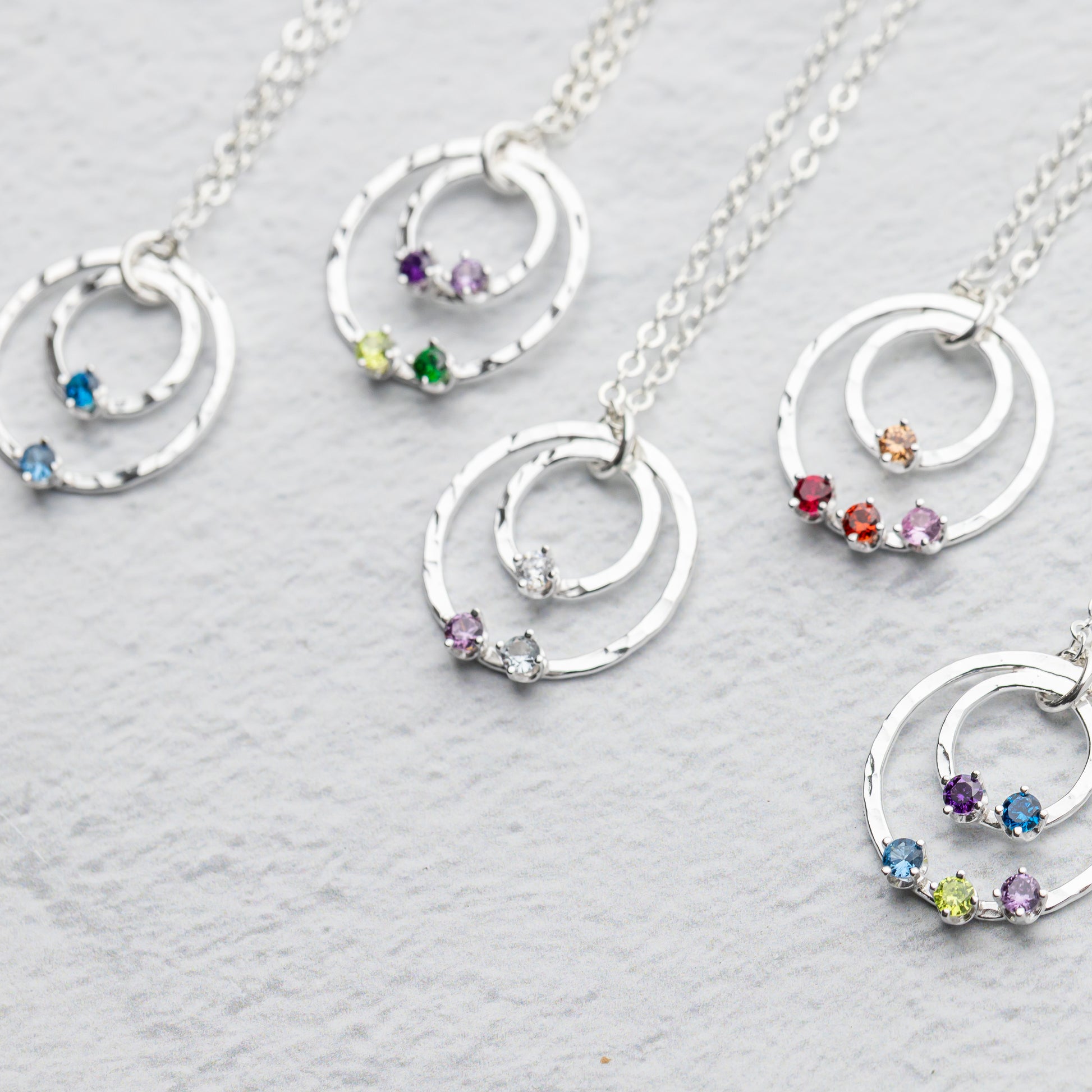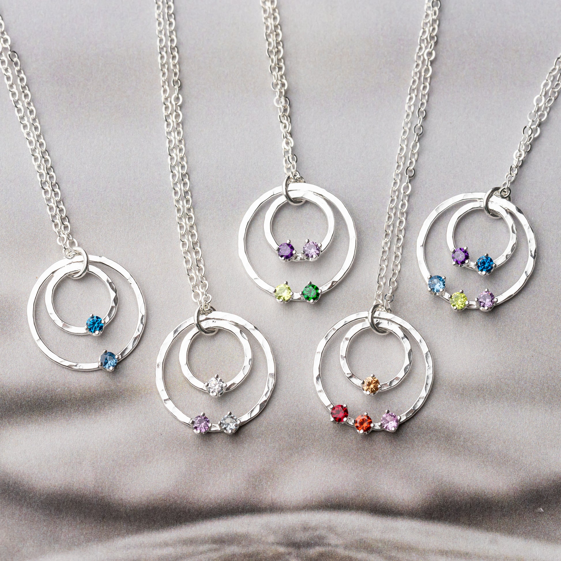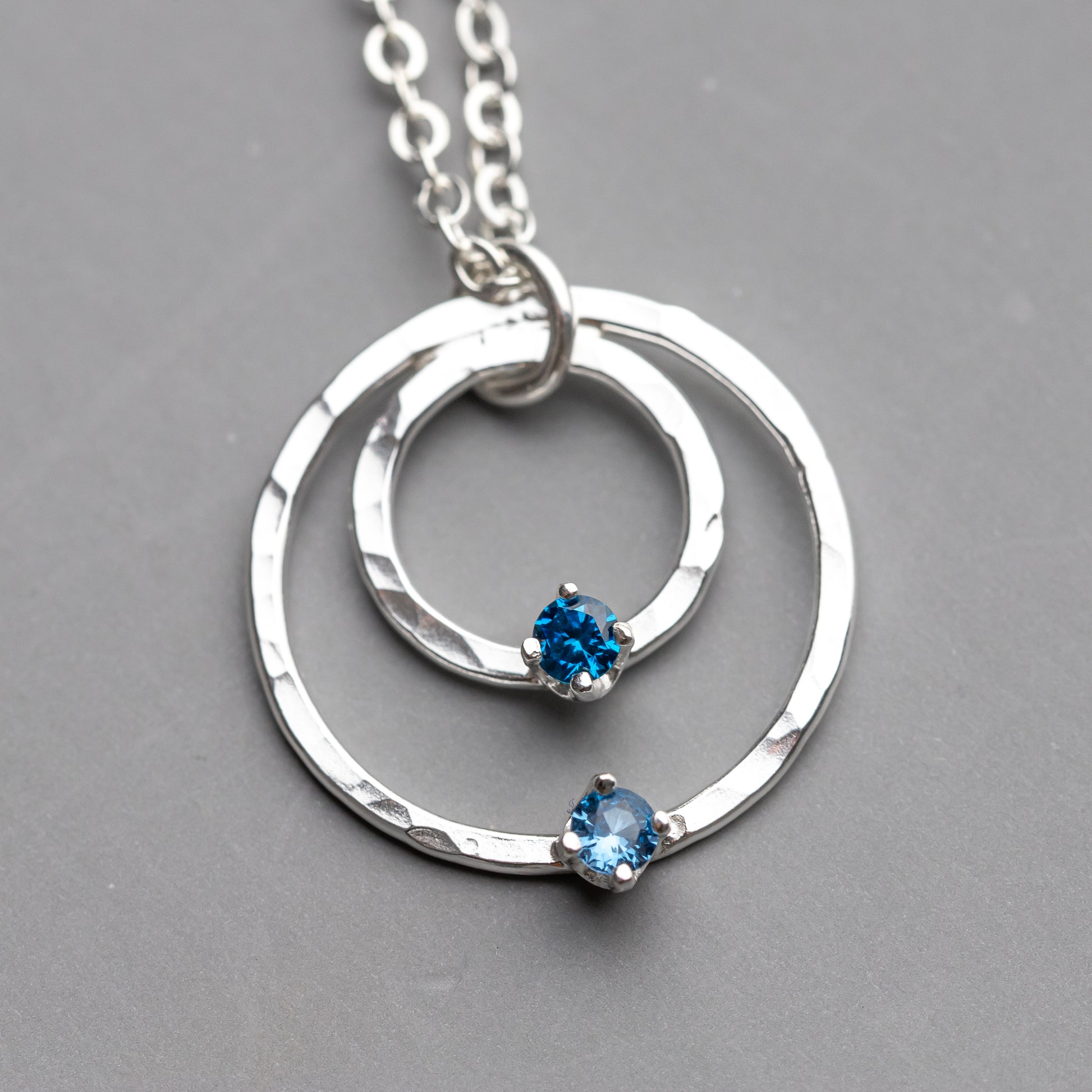 Each necklace is handcrafted in our Connecticut studio. We form and hammer every silver circle for texture and dimension, set each stone by hand, and polish to a reflective finish. Because every piece is made individually, your necklace will be unique and filled with the care we put into our craft. Please allow 7-10 days for us to create your custom necklace before it's ready to ship.