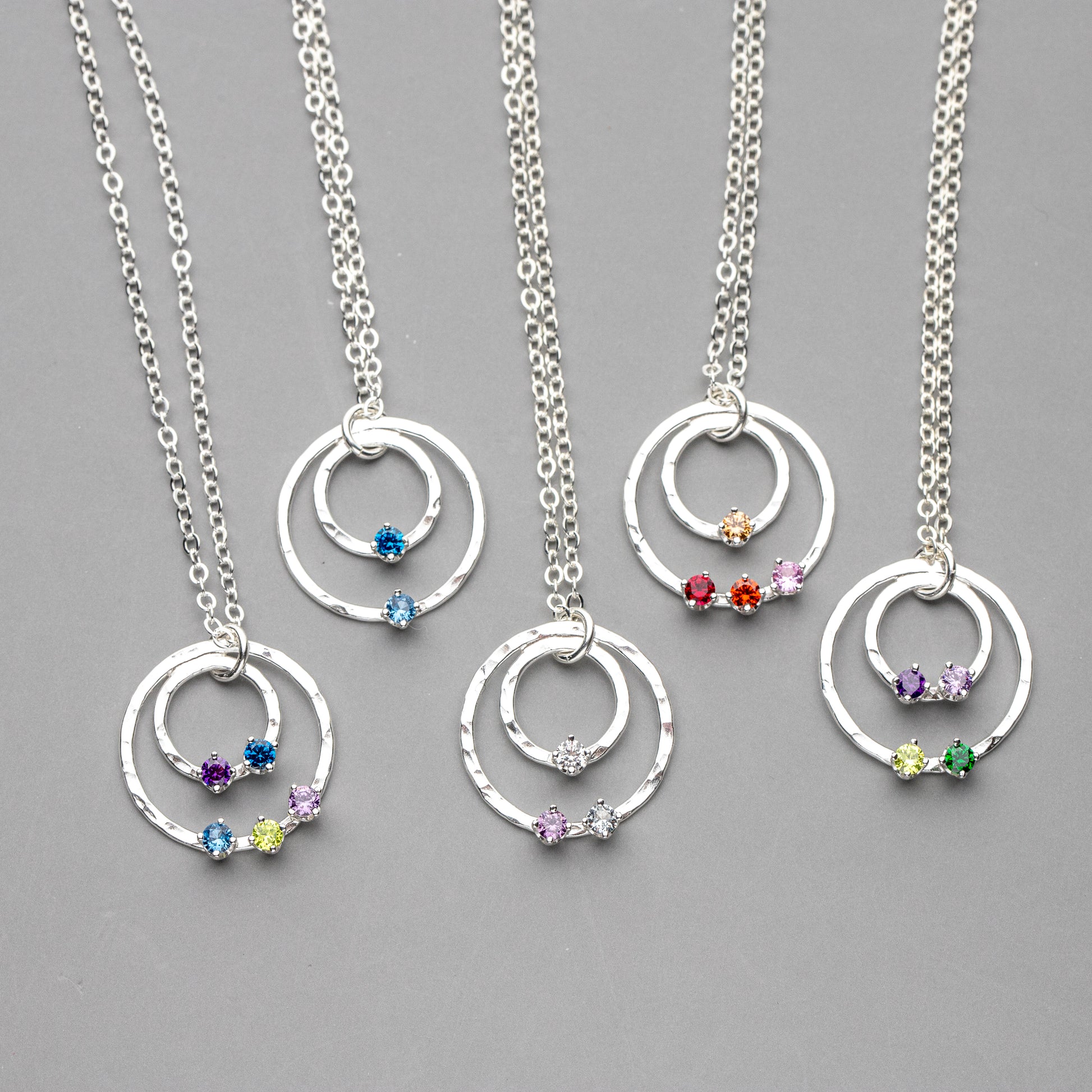 This necklace is a thoughtful gift for moms, grandmothers, and anyone who treasures family. The hammered silver circles are polished to a high shine to catch the light beautifully. Lightweight and durable, it’s a piece that can be worn every day.